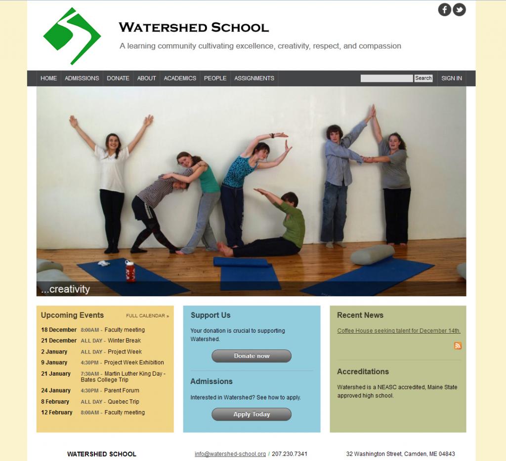 We worked to renevate the much-outdated Watershed school with a new, fun, and bright overhaul.  We set up the framework for migrating all their event and class management online, as well as setting up profiles of faculty and students.  To top it off, we built an image gallery to showcase trips, student work, school events, and more!  www.watershed-school.org.